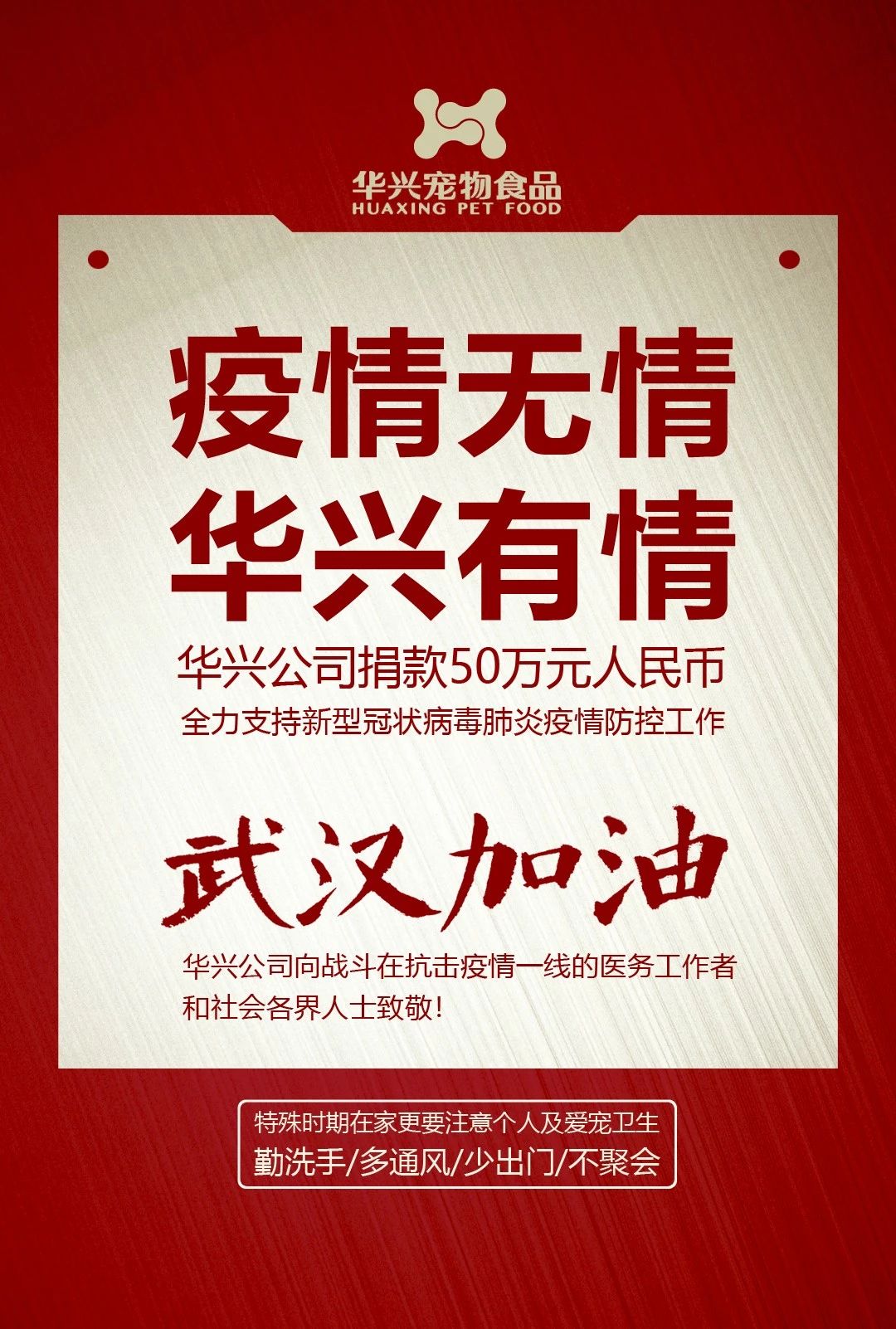 武漢加油,華興公司捐款50萬元,全力支持疫情防