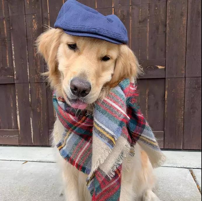 看狗子笑的這么開心,就知道肯定是一只被愛包圍的小乖乖,據說光不同的圍巾就上百條呢!